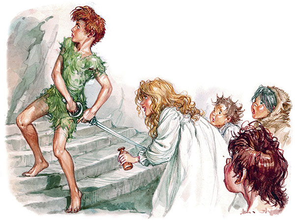 Он выхватил свой кинжал, и это был его звёздный час. Остальные неуклюже попятились. Увидев Питера, мальчишки поняли, что поддержки у него не найдут: он не станет удерживать девочку в Нигделандии против её воли.