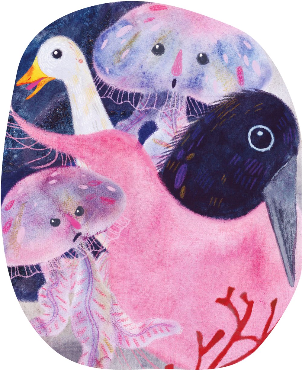 Общество, собравшееся на берегу, имело весьма неприглядный вид: перья у птиц взъерошены, шерстка у зверьков промокла насквозь. Вода текла с них ручьями, всем было холодно и неуютно.