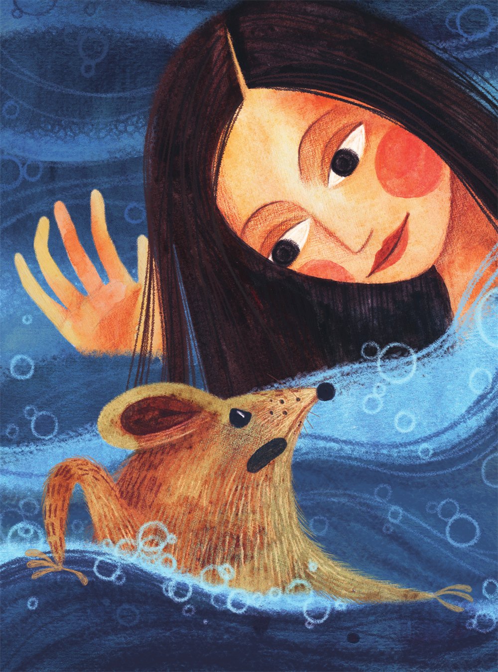 Мышь рванулась из воды и вся затрепетала от ужаса.