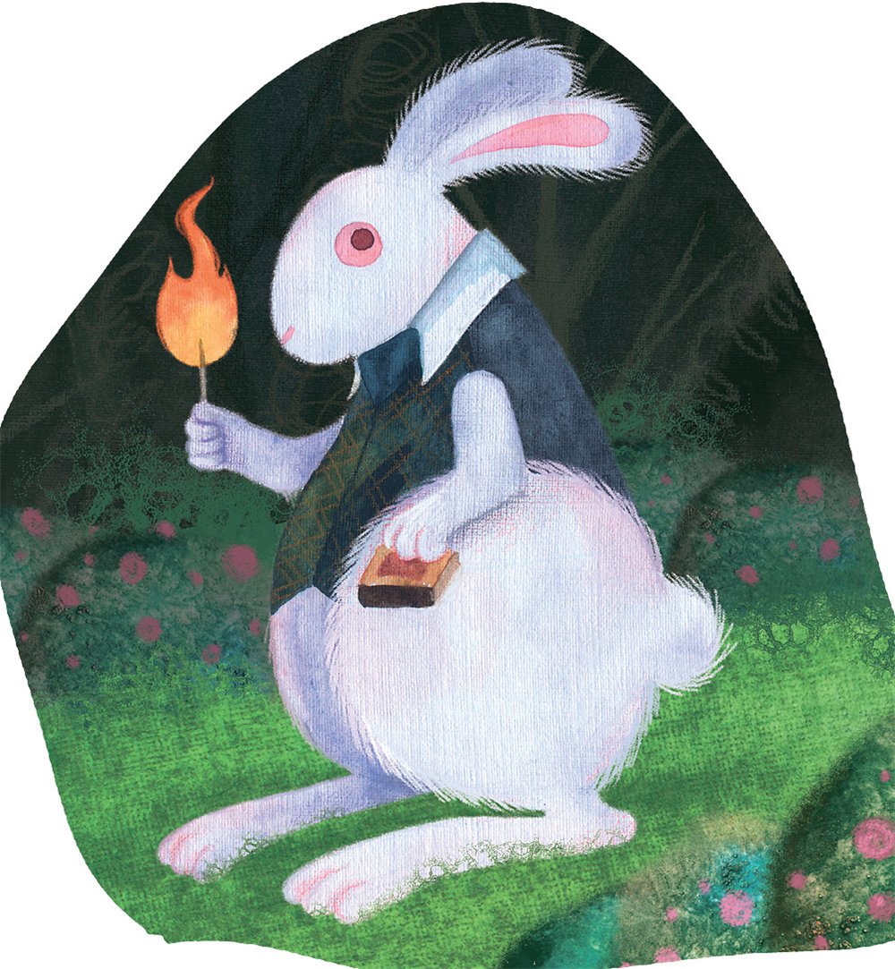 Алиса просунула ногу подальше в камин и стала ждать. Наконец, она услышала, что в дымоходе прямо над ней кто-то шуршит и скребется (что это был за зверек, она не могла догадаться).