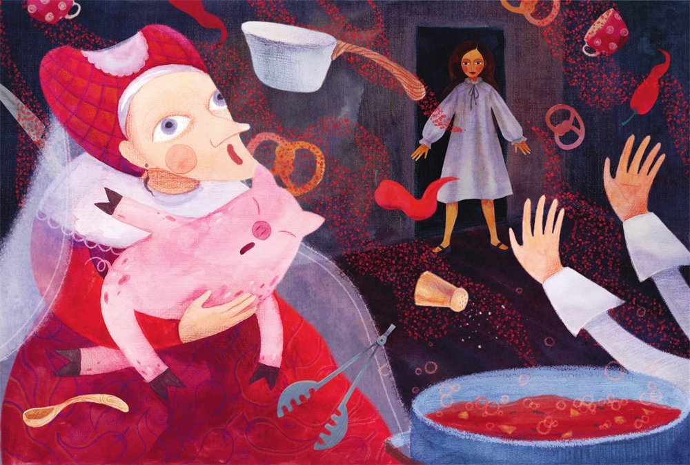– В этом супе слишком много перцу! – подумала Алиса. Она расчихалась и никак не могла остановиться.