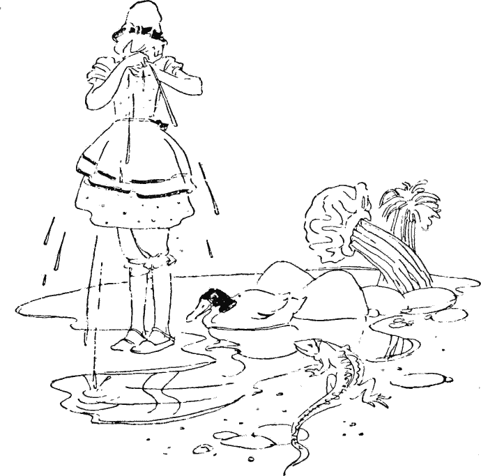 – Жаль, что я так ревела! – сказала Алиса, плавая вдоль и поперек озера и пытаясь из него выбраться. – Теперь я должна быть наказана, утонув в своих собственных слезах! Конечно, это будет очень странная вещь. Но сегодня все странно.