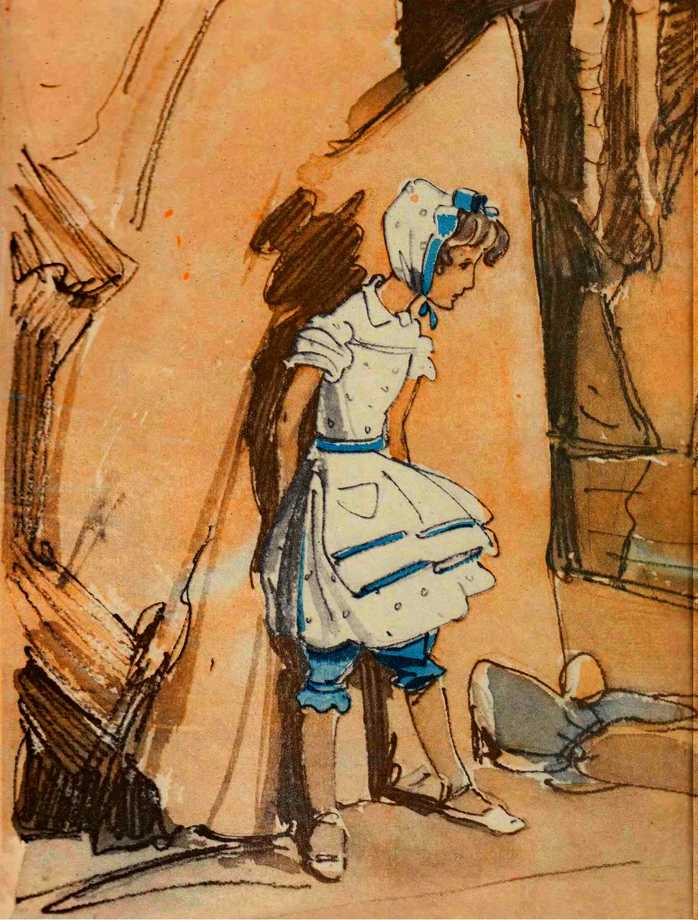 Алиса была в таком отчаянии, что готова была просить помощи у кого угодно, поэтому, когда Кролик поравнялся с ней, она начала тихим, робким голосом: