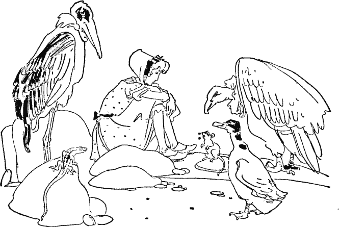 – Как будто мало хлопот высиживать яйца, – сказал Голубь, – так из-за змей я еще должен быть настороже днем и ночью! Три недели я ни на секунду не могу сомкнуть глаз.