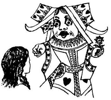 – За шиворот его! – заорала Королева. – Обезглавить его! Вышвырнуть его отсюда! Подавить! Защипать! Отрезать ему уши!