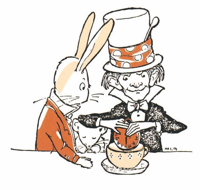 – В этой стороне, – взмахнул правой лапкой Кот, – живёт Шляпник, а в этой, – взмахнул левой, – живёт Мартовский Заяц. Можешь заглянуть к ним, если хочешь. Они оба сумасшедшие.