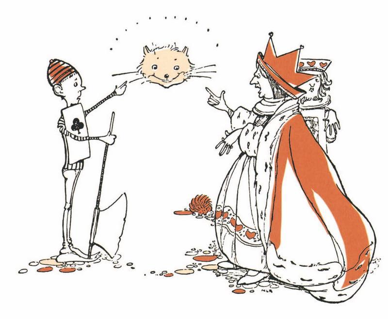 – С кем это ты разговариваешь? – спросил Король, подойдя к Алисе и с удивлением разглядывая голову Кота.