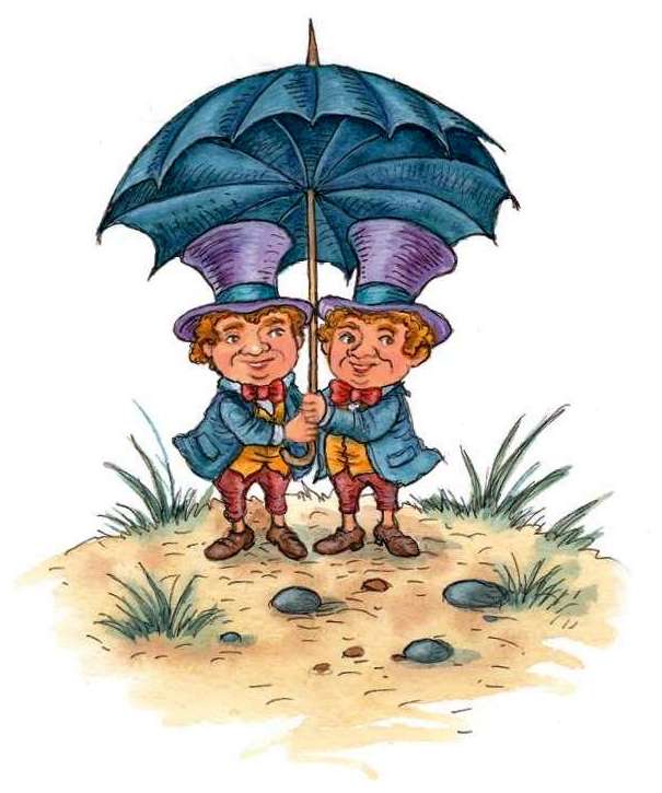 Твидлдум раскрыл над собой и братом большой зонтик и выглянул из-под него: