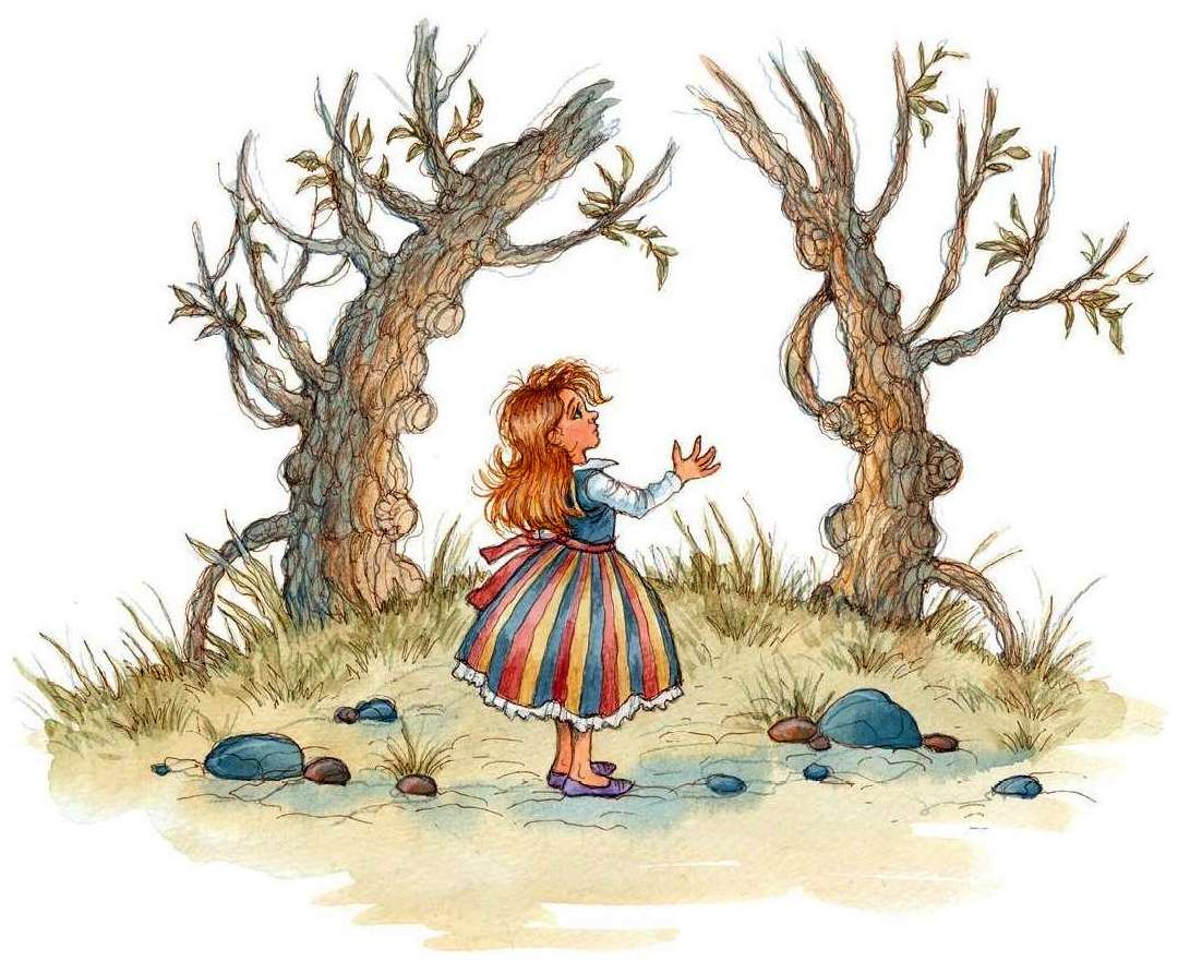 Алиса растерялась, не зная, что на это сказать. Во-первых, их общение вовсе не походило на разговор: он ни разу не обратился к ней, а последнее замечание было и вовсе, очевидно, обращено к дереву. Алиса стояла и тихо повторяла про себя: