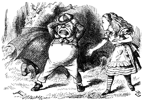 – В таком случае начнем все сначала, – отвечал Шалтай-Болтай. – Теперь моя очередь спрашивать! – («Можно подумать, что мы играем в такую игру!» – подумала Алиса). – Вот тебе вопрос! Как ты сказала, сколько тебе лет?