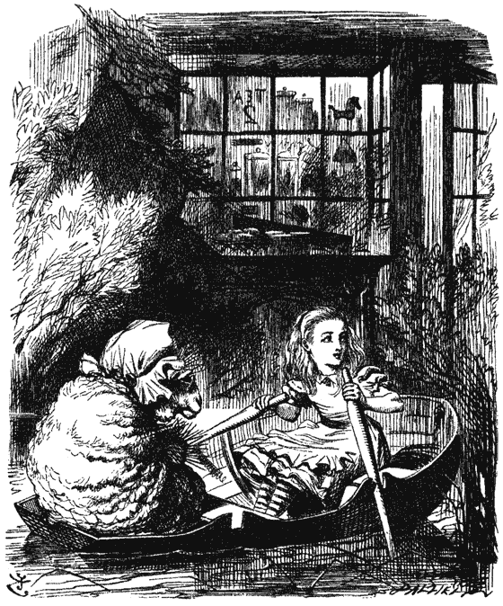 – Интересно, почему это бесполезно? – размышляла Алиса, пробираясь на ощупь между столами и стульями. В дальнем конце лавки было очень темно. – Что это? Чем ближе я подхожу к яйцу, тем дальше оно уходит от меня! А это что такое – стул? Почему же у него тогда ветки? Откуда здесь деревья? А вот ручеек! В жизни не видела такой странной лавки!