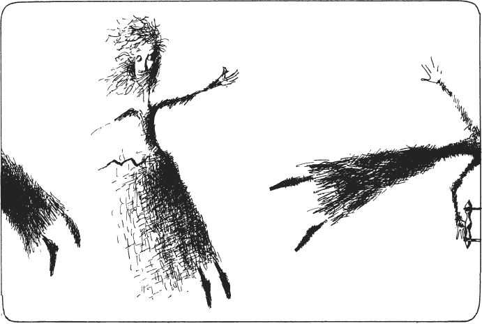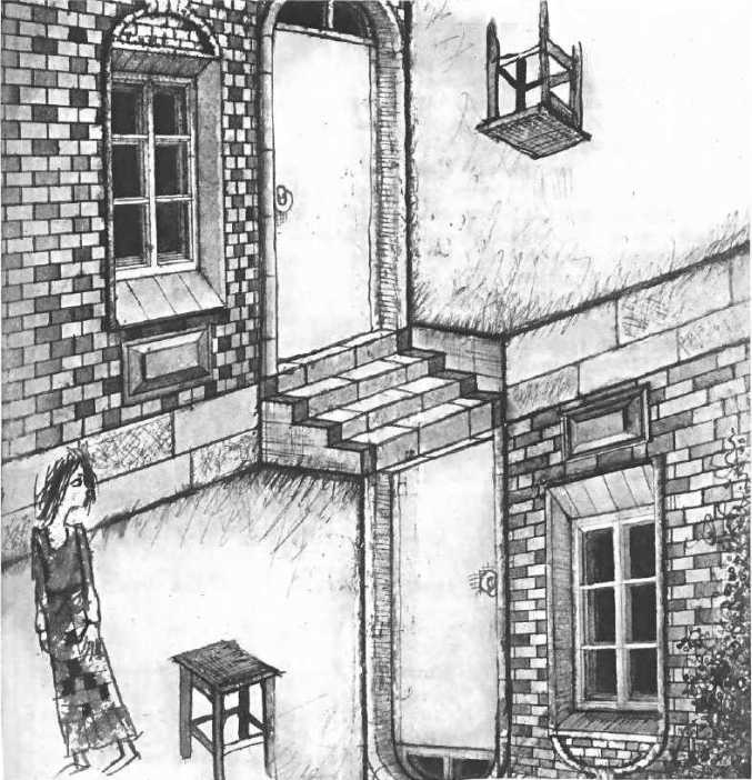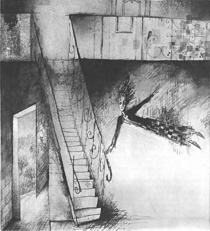 Она выскочила из комнаты и побежала по лестнице… то есть не побежала, а полетела. КАК И ПОЛОЖЕНО В ЗАЗЕРКАЛЬЕ (так решила Алиса). А ПОЛОЖЕНО В ЗАЗЕРКАЛЬЕ было так: нужно было одной рукой держаться за перила и плыть по воздуху, не касаясь ногами ступенек.