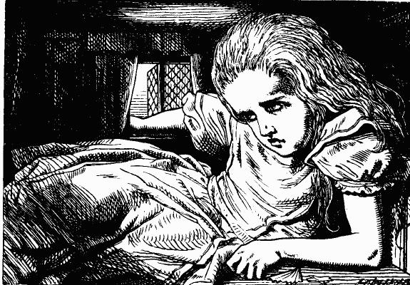 'It was much pleasanter at home,' thought poor Alice, 'when one wasn't always growing larger and smaller, and being ordered about by mice and rabbits. I almost wish I hadn't gone down that rabbit-hole—and yet—and yet—it's rather curious, you know, this sort of life! I do wonder what CAN have happened to me!