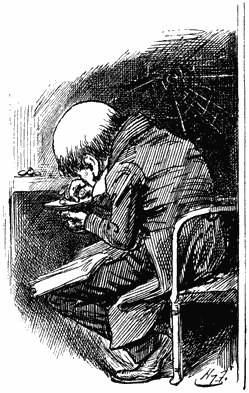 Он открыл дверь кладовой… Старик и впрямь оказался Другим Профессором, сидевшим в кресле, держа на коленях книгу. Он был занят тем, что доставал орех с тарелки, которую придвинул поближе к себе. Он оглядел нас с головы до ног, но ничего не сказал, пока не прожевал орех. И лишь после этого задал привычный вопрос: