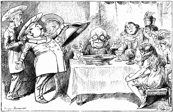 Профессор подошел к Главному Повару и что-то сказал ему вполголоса. Главный Повар тотчас вышел из зала в сопровождении младших поваров и поварят.