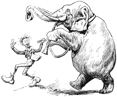 За спиной Садовника показался громадный Слон. Он шел на задних лапах и играл на огромной трубе, которую держал в одной из передних.