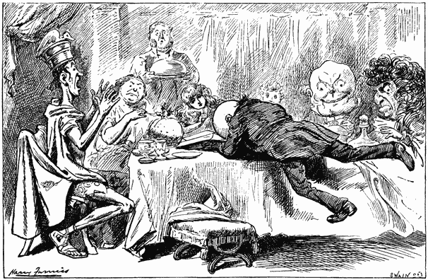 – О, несомненно! – напыщенно кивнул Лорд-Канцлер; он поднялся, чтобы руководить этой ответственной церемонией. – Наполнить бокалы! – загремел он. Этот приказ был тотчас выполнен. – Выпить за здоровье Императора! – В ответ в зале раздалось дружное бульканье. – Тройное ура Императору! – За этим тотчас загремели оглушительные раскаты здравиц, и Лорд-канцлер, не теряя присутствия духа, торжественно провозгласил: – Речь! Император произнесет речь!