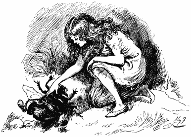 Однако Сильвия то и дело спотыкалась: малыш бегом повел ее по камням и корягам, и было просто чудо, что бедная девочка еще держалась на ногах. Но Бруно был слишком взволнован и не задумывался, что же он делает.
