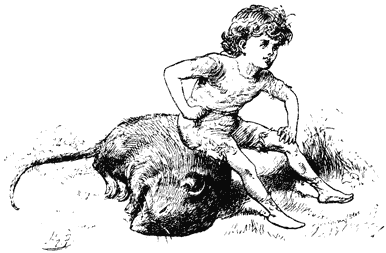 Бруно тотчас умолк; она и в самом деле медленно шла сквозь густую траву. Увидев ее, малыш нагнул голову, как маленький бычок, и, бросившись на нее, закричал что есть мочи: