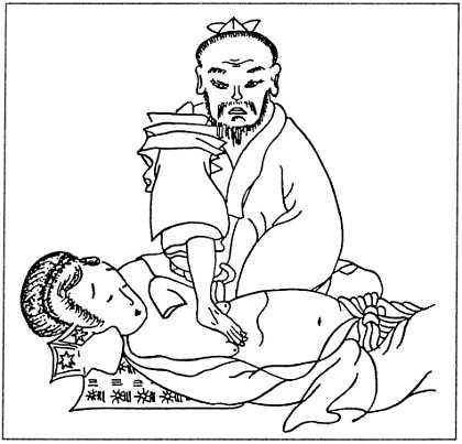 Не только магическим обрядам, но также и всем методам шаманского врачевания в древнем Китае была свойственна необыкновенная крайняя жестокость. К примеру, радикальным способом лечения лихорадки считалось хлестание больного ветвями персикового дерева, дабы изгнать из организма нечистую силу, вызывавшую это заболевание. Но поистине панацеей от всех болезней служили человеческая кровь и жир, которыми натирали болезненные участки тела или принимали их внутрь [33, 53].