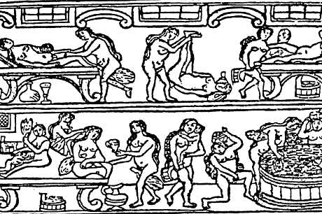 В 1567 г. король Франции Генрих II, заинтересовавшись существовавшими в то время банными манипуляциями, приказал своему советнику Шампьеру Ду Шолю составить подробное и исторически достоверное сочинение о банях и телесных упражнениях древних греков и римлян. В своем труде Ду Шоль, сообщая о различных приемах, употреблявшихся в античных банях, детально описал холодильную, купальную, мыльную, духовую, теплую комнаты банного помещения, а также обстоятельно доказывал, что в этих банях раньше состояли на службе специально обученные рабы, в обязанности которых входило массирование купающихся. Натирание благовониями было, по его словам, приятным и изысканным обычаем древности.