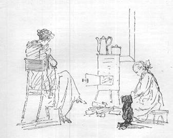 Вечером Галя с мамой сидели у маленькой печки, подкладывая в неё непрерывно сухие кусочки дерева. Дров настоящих у мамы не было, а маленькие кусочки дерева сгорали быстро, как спички. Марсик тоже грелся у печки. Мама сказала, что он был ранен, вероятно, во время уличной перестрелки, и Галя помогла ей перевязать Марсику лапу, пробитую пулей навылет.