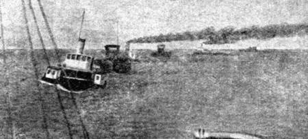Речные пароходы и баржи следуют морем Лаптевых из устья Лены на Колыму