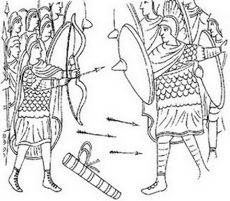 [Закрыть]. Но на войне, как считается, этот музыкальный инструмент применялся исключительно восточными народами, в частности парфянами, и появился на Западе лишь в эпоху Средневековья[540]540