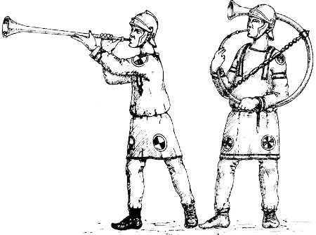 Музыкальные инструменты. Музыкальные инструменты играли большую роль в позднеримской армии и были одним из главных средств передачи команд и сигналов во время сражения или марша.