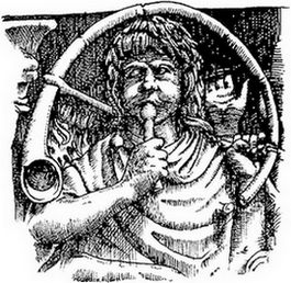 [Закрыть]. В действительности же буцина – духовой инструмент, имеющей коническую форму, сделанный из рога быка или морской раковины. Существует предположение, что буцина представляла собой модификацию cornu, приспособленную для нужд кавалерии[517]517