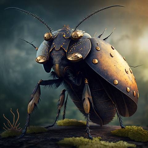 Проходя вдоль опушки леса, заметил здоровенного жука. Даже не просто здоровенного, а размером едва ли не с черепаху. Ну, может, мне так показалось, но сантиметров тридцать в высоту насекомое точно имело.