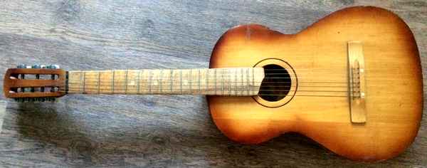 – Вот, как у Владимира Высоцкого. Слышал о таком? – спросил он, протягивая мне инструмент, внутри корпуса которого виднелась приклеенная бумажная маркировка. Прочитав её, мне стало ясно, что в руках я держу семиструнную гитару, изготовленную на фабрике народных инструментов им. Луначарского в городе Ленинграде.
