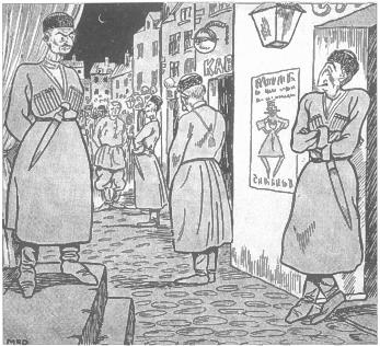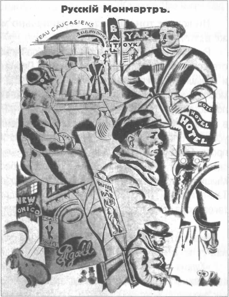 Русских артистов парижская эстрада почти не знает. Те немногие из наших соотечественников, которые подвизаются в Париже, дальше ночных кабаре не идут, и большие парижские театры для них закрыты. Наилучшее положение занимает московская исполнительница цыганских романсов 3. А. Давыдова. Работает она по ресторанам. Также ограничен и репертуар о России. Еще совсем недавно были в моде грубейшие антибольшевистские пасквили, но теперь они не пользуются успехом. Впечатление такое, будто Франция не знает, как себя держать в этом вопросе. Особняком стоит искусство бывших эмигрантов. Кроме постоянного русского театра «Золотой Петушок» – одного из бесчисленных подражаний «Летучей Мыши» – существует целый ряд эстрадных предприятий при русских ресторанах. Там-то и подвизаются «цыганские хоры из бывших титулованных». Во главе одного такого хора стоит граф Толстой, а другим управляет князь Голицын.
