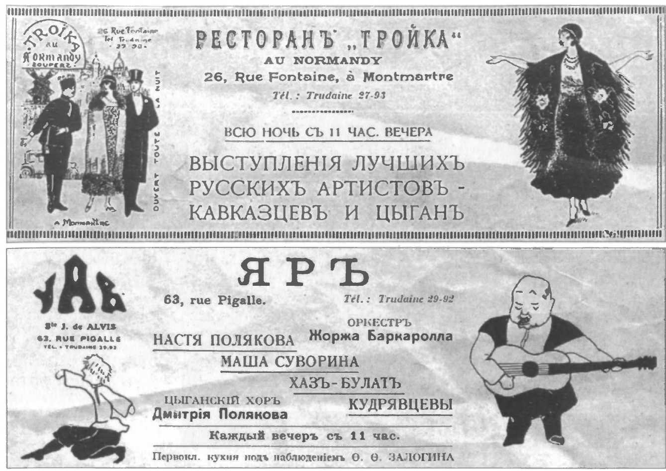 Реклама русских ресторанов из эмигрантской прессы Парижа. 1920-е