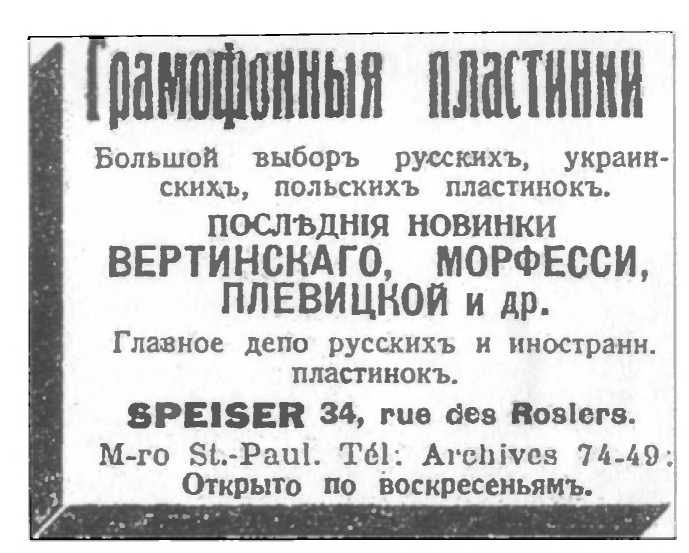 Реклама о продаже эмигрантских пластинок. Париж, 1930