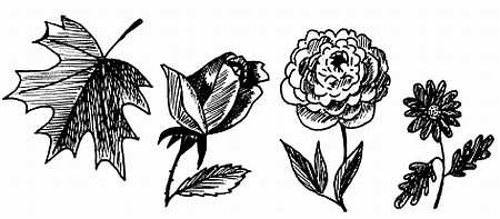Особыми формами передаются и различные времена года: весна – это энергичные изгибы веток; лето – распустившиеся лепестки, листья, стебли; осень – редко поставленные тонкие ветки; зима – оголенные ветки.