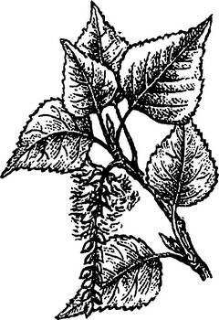 Листовые почки очередные, узкоконические, клейкие, смолистые, с ароматным запахом. Их-то и используют с лекарственной целью, хотя целебными свойствами обладают и листья, и уголь из древесины.