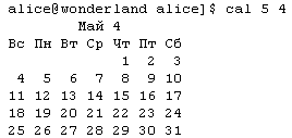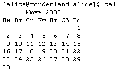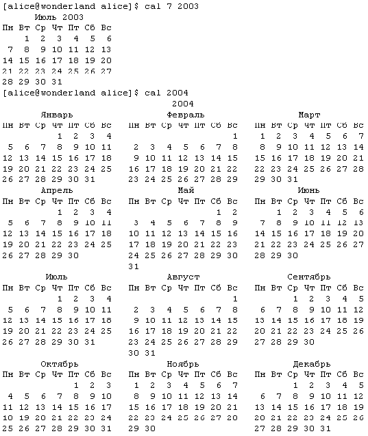 [Закрыть]. Например, команда cal по умолчанию выводит календарь на текущий месяц.