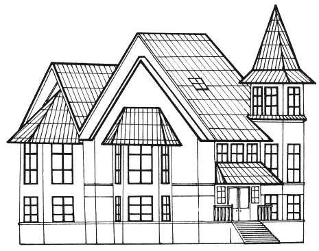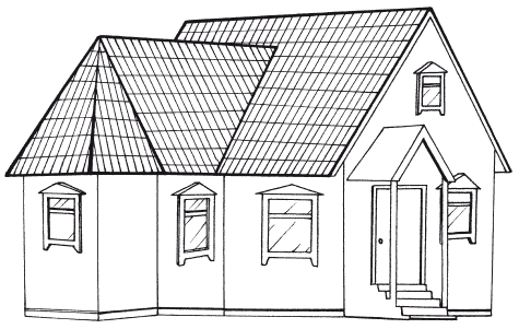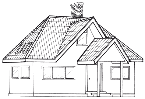 Но в отличие от базовой основы ее исполнения, представленной на рис. 11, крыша имеет несколько элементов, выгодно ее отличающих в функциональном плане. Вместо чердачного окна на крыше мы можем увидеть два мансардных окна. Пространства под четырехскатной крышей обычно достаточно для оборудования в чердачном помещении просторной мастерской или дополнительной комнаты отдыха. Наличие щипцов в передней части крыши придает дому выразительные очертания и эстетическую привлекательность. Однако следует учесть, что использование щипцов при проектировании крыши повышает сложность исполнения, а значит, и стоимость работ.