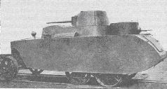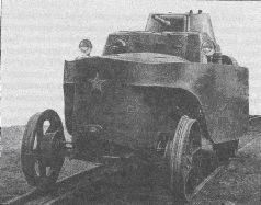 Бронеавтомобиль БАД-2 на железнодорожном ходу. Лето 1932 года. Видно, что при движении по рельсам автомобильные колеса снимались (АСКМ).