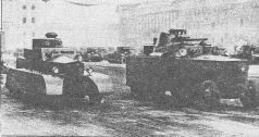 Бронеавтомобили БАД-1 и БАД-2 проходят по площади Урицкого (ныне Дворцовая) во время парада. 1 мая 1933 года (АСКМ).