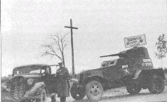 БА-10 на шасси ГАЗ-АА на одной из дорог. 1-й Белорусский фронт, осень 1944 года. На машине надпись: «Подвижной КПП» (РГАКФД).