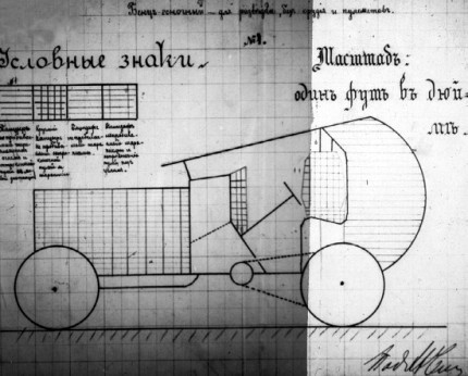 1. Автомобиль фабрики „Бенц“, 100 сил, может развивать скорость до 120 верст, задним ходом 50 верст, все механизмы будут забронированы панцирем моего Чемерзина изобретения, а также и те места, где будут находиться люди.