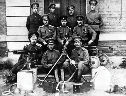 Юго-Западный фронт, Тарнополь, июль 1915 года. Бронезащита стволов пулеметов оригинальной формы установлена в России (РГАКФД).