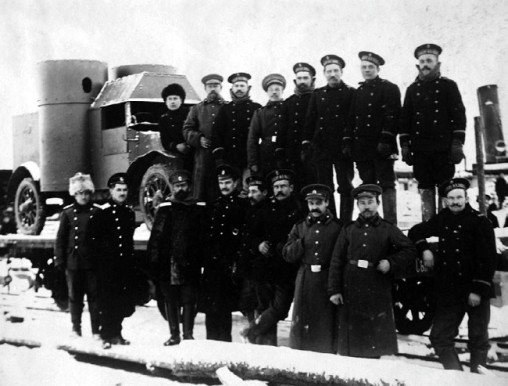 Солдаты и офицеры 19-го автопулеметного взвода у броневика «Пылкий».