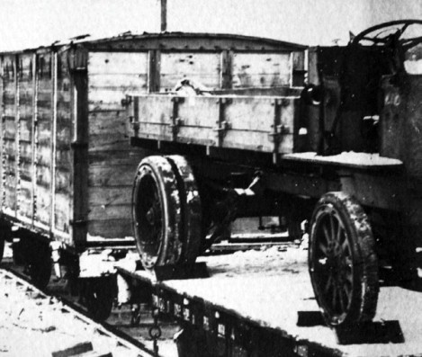 Погрузка грузовика „Гарфорд“ СОЕ на железнодорожную платформу. Архангельск, ноябрь 1914 года (АСКМ).