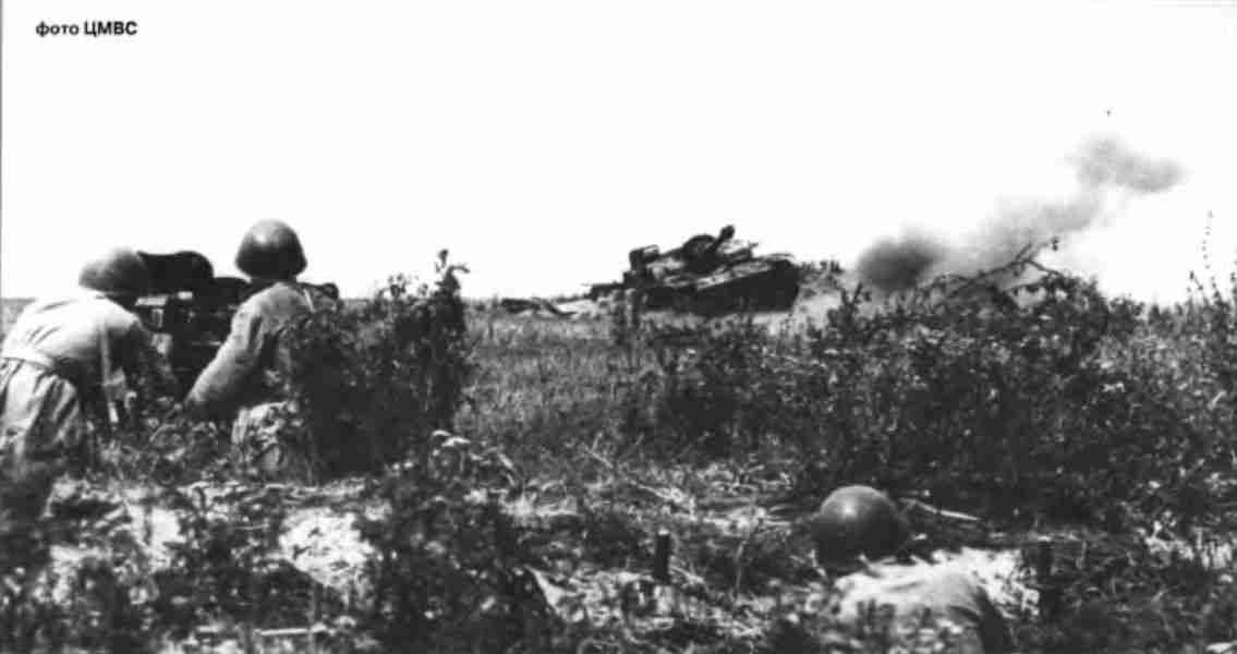Немецкие артиллеристы отражают атаку советских танков. Июль 1943 г. (Фото из коллекции авторов).