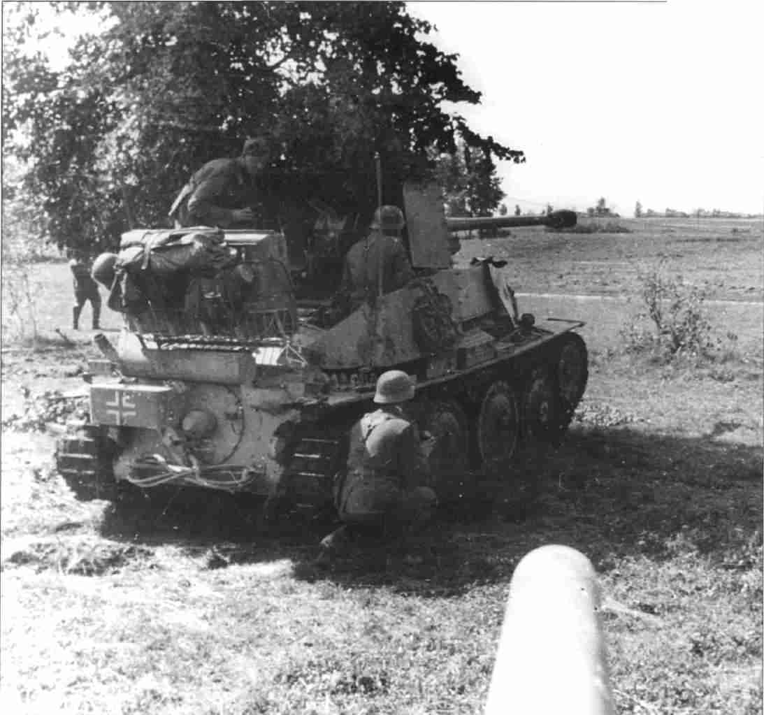 Противотанковая САУ «Мардер III» прикрывает выдвижение немецких танков (Фото РГАКФД).