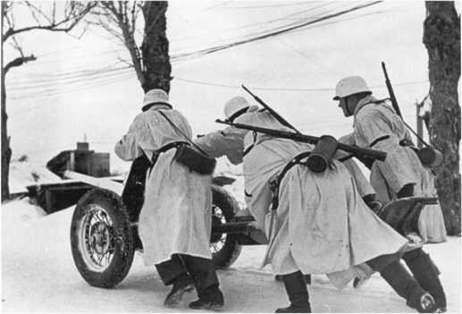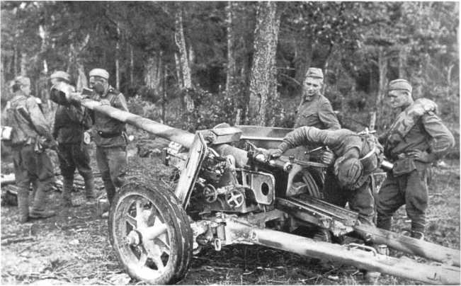 ДИВИЗИОНЫ ИСТРЕБИТЕЛЕЙ ТАНКОВ. 463-й дивизион истребителей танков (Panzer-Jager-Abteilung 463). Сформирован 15 сентября 1940 года в Норвегии в составе штаба и трех рот истребителей танков -303, 304 и 305-й, в каждой по 12 37-мм пушек Pak 35/36. К июню 1941 года входил в состав немецкого горного корпуса, находившегося в Финляндии, участвовал в боевых действиях в Карелии. По состоянию на 28 июня 1942 года насчитывал 21 Pak 35/36 и три тяжелых противотанковых ружья Pz.B.41. К 1 июля 1943 года имел три роты с 50-мм Pak 38. Действовал в Карелии и Финляндии до осени 1944 года.