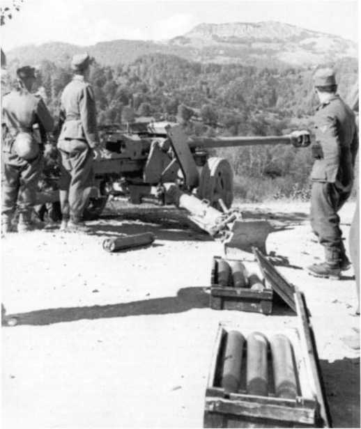 Расчет 75-мм противотанковой пушки в горах Албании. Лето 1943 года (БА).